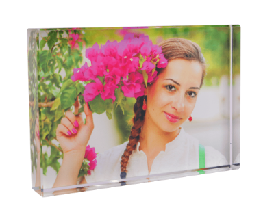 To sublimate on the Glass Photo Block, print the image or design onto sublimation paper using sublimation ink. Place the printed paper against the back of the photo block and use a heat press to transfer the image. No need to mirror the artwork, since your customers are sublimating on the back. The sublimation process will leave a clear, crisp image on the back that is visible through the front.