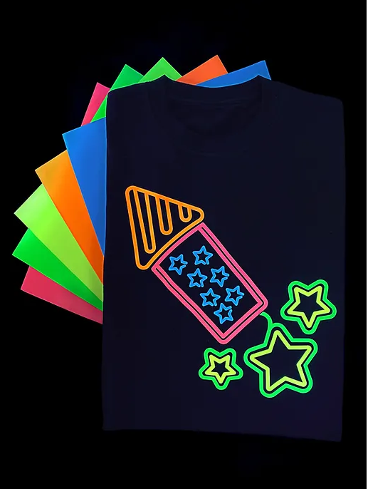 Enter Easy Glow: the HTV that glows in the dark - in multiple colors! Featuring a palette of vibrant, neon colors, Easy Glow looks stunning in the daytime on any garment! But, where Easy Glow REALLY shines is in the dark. When the lights go out, Easy Glow gives off a luminous appearance in a variety of fluorescent colors! Great for costumes, kid's clothes, and party accessories, Easy Glow is a surefire way to light up your nights!