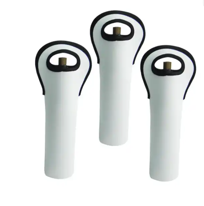 White neoprene material holds a 750mL wine bottle and is insulated to keep your bottles cold.